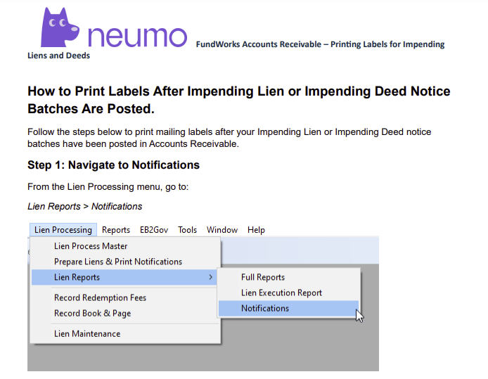 How to Print Labels After Impending Lien or Impending Deed Notice Batches are posted.