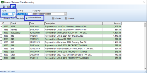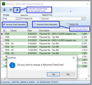 Selecting Yes to charge a Returned Check Fee, will add the invoice